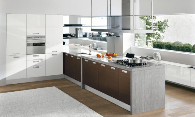 Toute la modernité du verre laqué et d’un cadre en aluminium