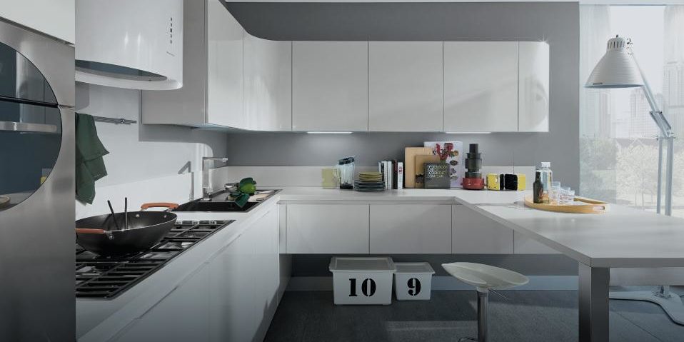 Réalisée avec des portes en bois stratifié pour une cuisine très robuste,