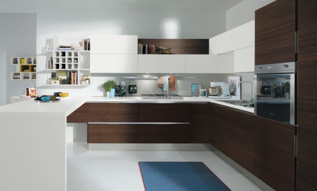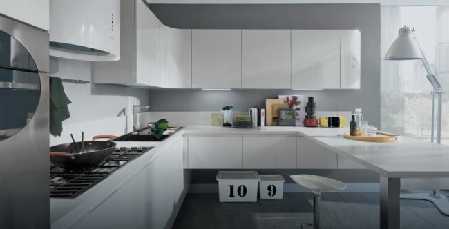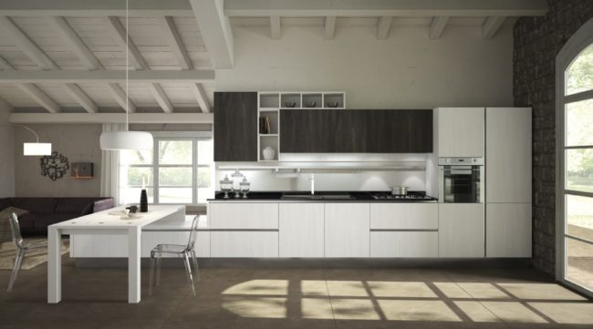 L’âme de cette cuisine en matériau polymère réside dans ses lignes droites